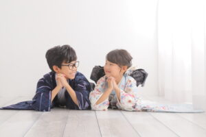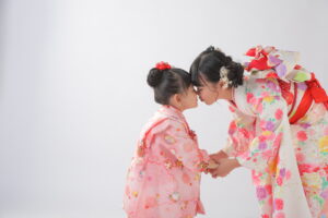 家族みんなで和装の記念撮影ができちゃう! ご家族全員分の着物レンタル、ヘア、メイク、着付けがついています! ※兄弟姉妹さんについては、七五三サイズのお衣装までが対象になります。