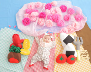 ベビーアートとは、 かわいい背景の上に赤ちゃんがコロンと寝転がって、上から撮影するお写真です。 「お昼寝アート」とも言われ、まるでお話や情景の中に入り込んだような写真で人気のお写真です。